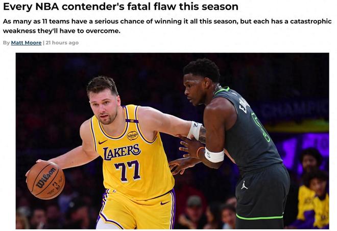 湖人是一支头重脚轻的球队,他们将太多筹码押宝在进攻端,但在防守端却缺乏可靠的球员。